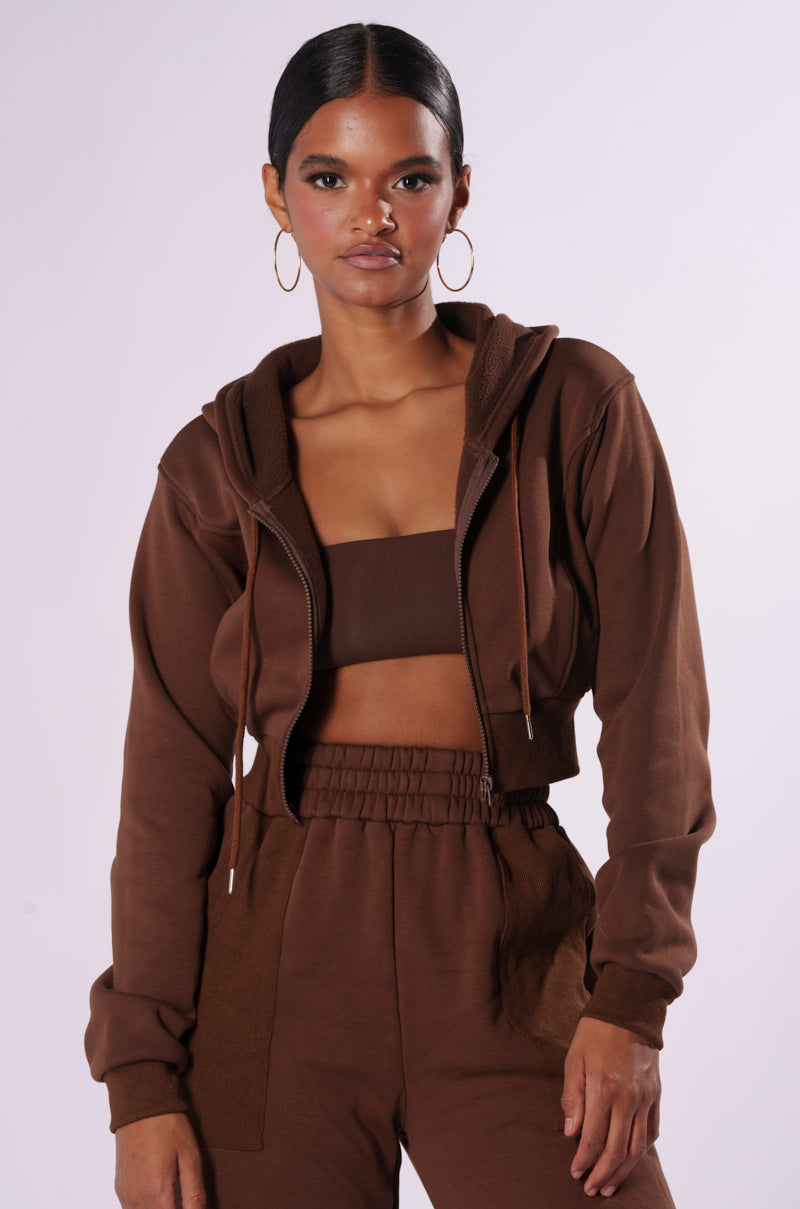 A matching sweatsuit is a must-have for busy girls. Fortunately. The AKIRA Label Love Hate Thing Sweatshirt has got you covered. This cozy essential features a cropped silhouette with a ribbed. elasticized hem. long sleeves with ribbed cuffs. ribbed side paneling. a tonal zip front closure. and an attached hood with tonal draw strings. Style it with the coordinating Love Hate Thing Jogger for a monochrome finish that'll keep you looking chic on-the-go!